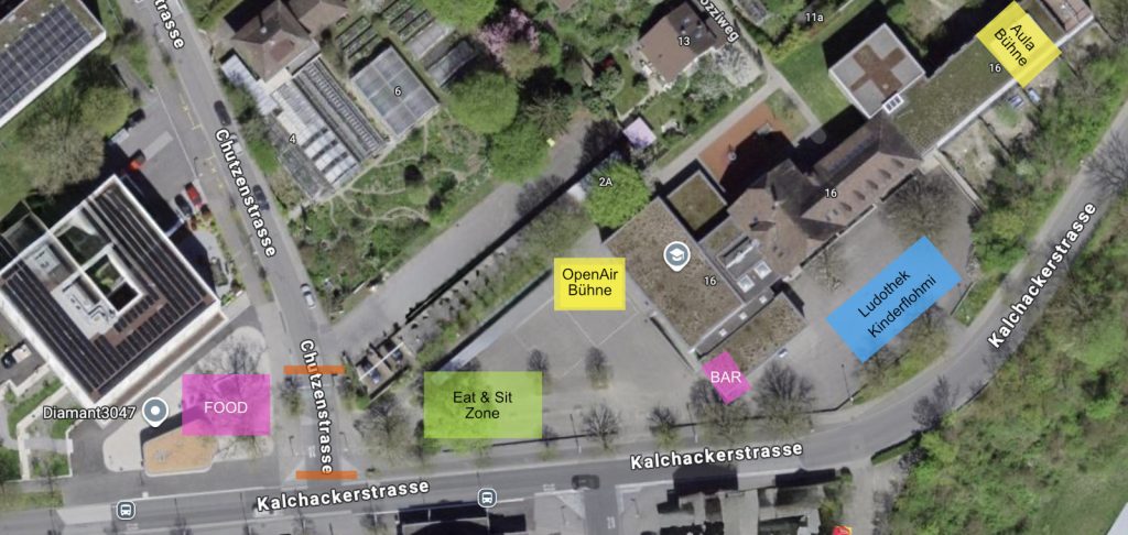 Das Festival findet direkt im Zentrum von Bremgarten bei Bern statt. Die Chutzenstrasse wird im orange markierten Bereich gesperrt für den Verkehr.